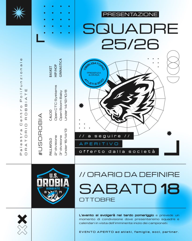 Sabato 18 Ottobre vi aspettiamo per un evento di presentazione di tutte le nostre squadre e atleti di pallavolo, calcio, basket e hip-hop.